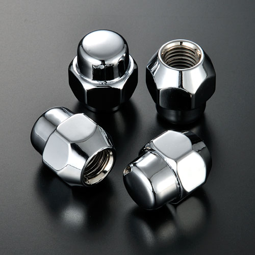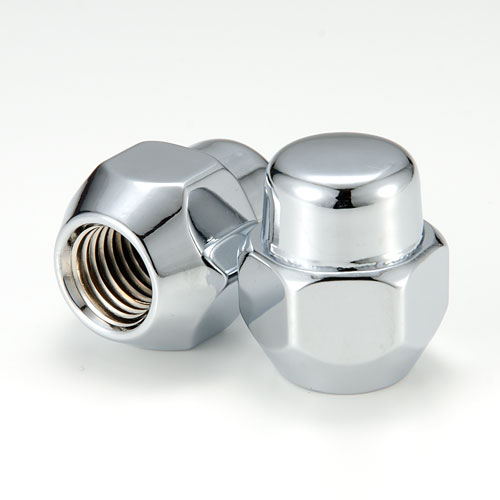 右がメーカー純正品。左が当社製「無印ナット」です。形状、光沢の違いをご覧ください。