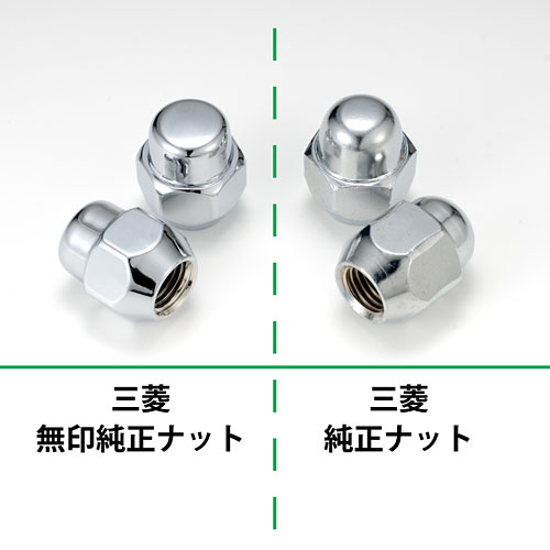 右がメーカー純正品。左が当社製「無印ナット」です。形状、光沢の違いをご覧ください。
