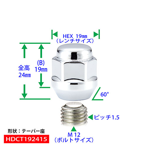 ※(B)は、ホイール穴接触部分(座部)を含めない寸法で、ホイール形状に合わせ、ナットを選択する目安になります。
