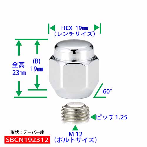 ※(B)は、ホイール装着時のナットテーパー座部露出箇所からトップまでの高さです。